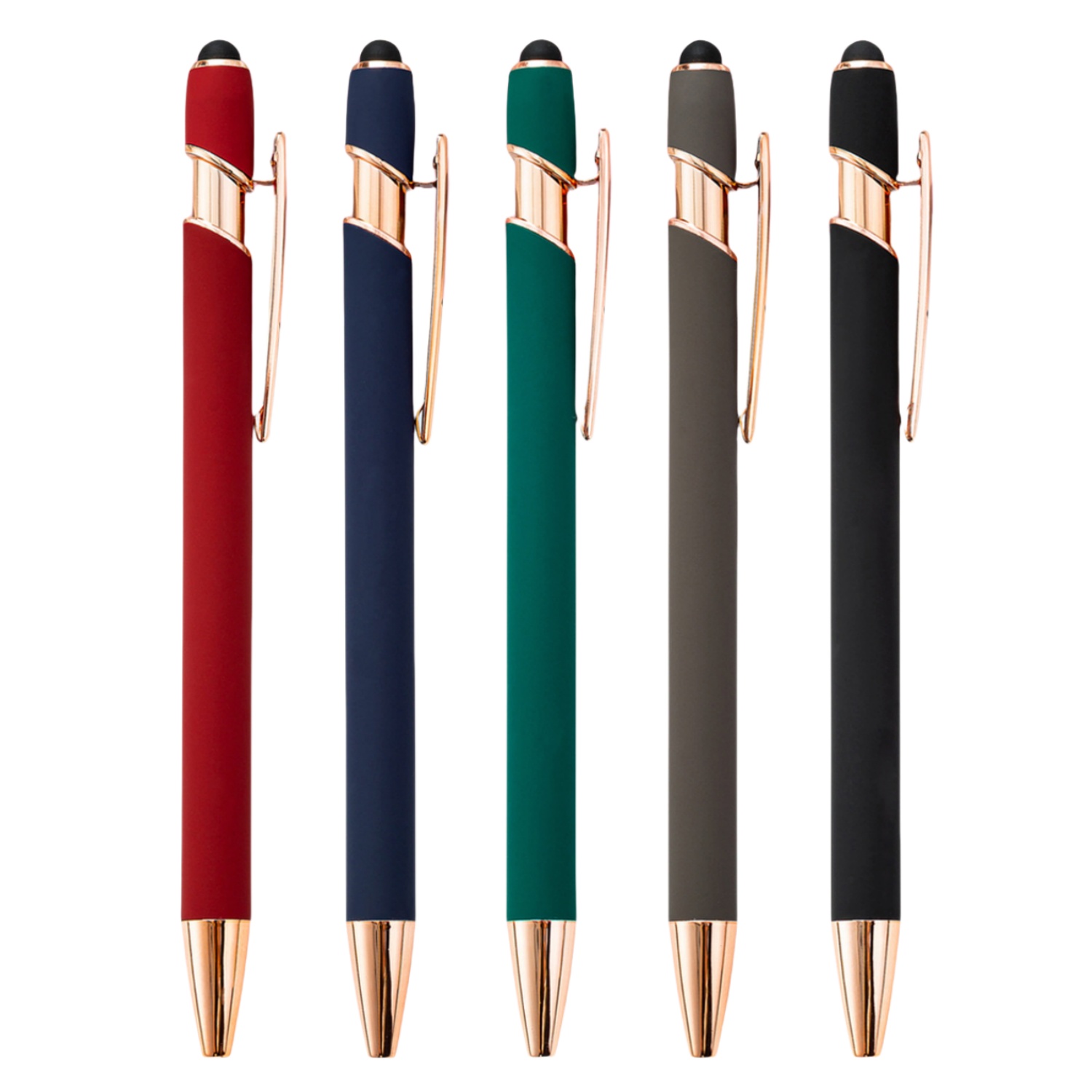 This pen is made of high quality metal material, comfortable and durable.Soft Touch Ballpoint Pen with Rose Gold.Good assistant for office, bring you nice using experience. The stylus pen is lightweight with a clip design, clip easily on your carrying case, pocket, book, diary, etc.