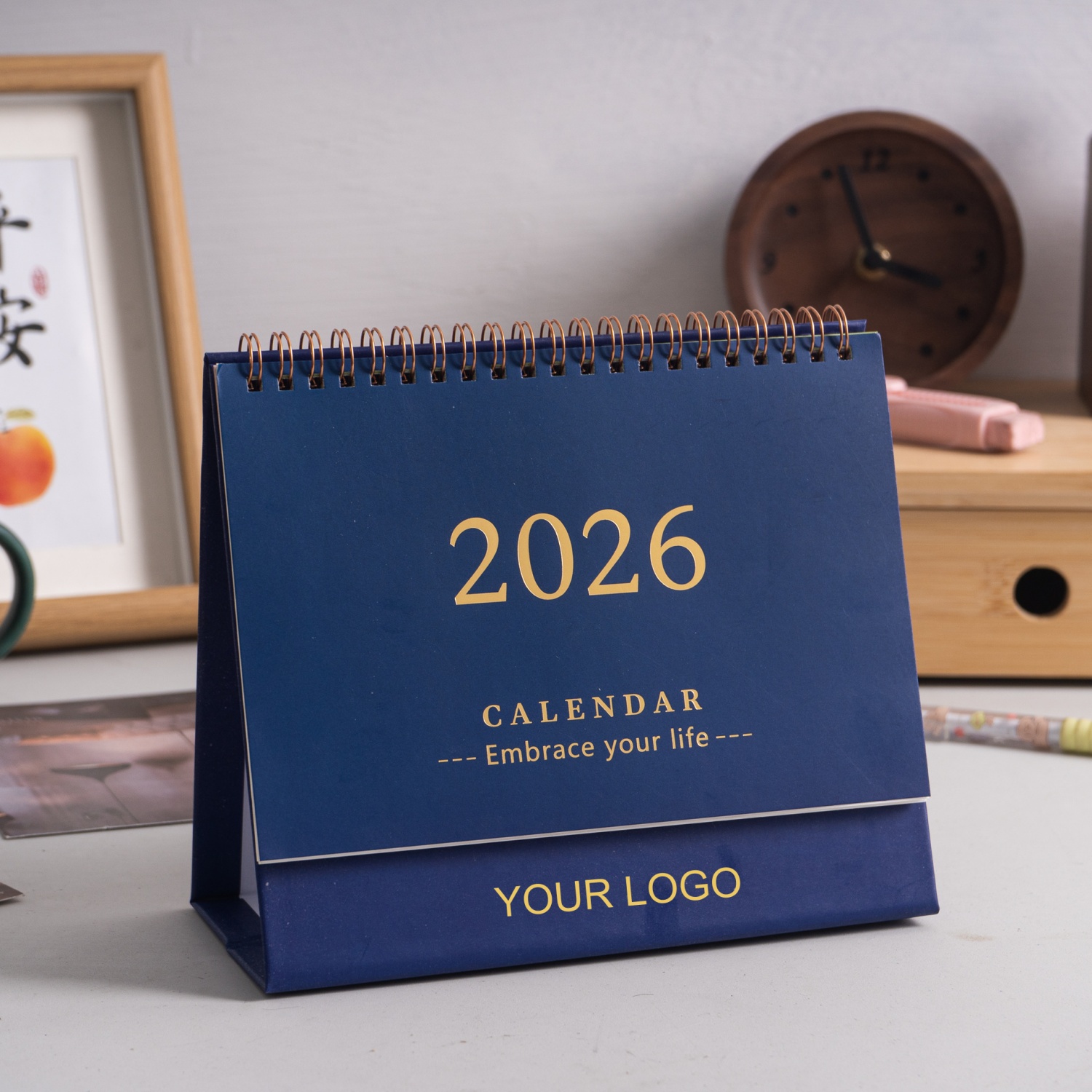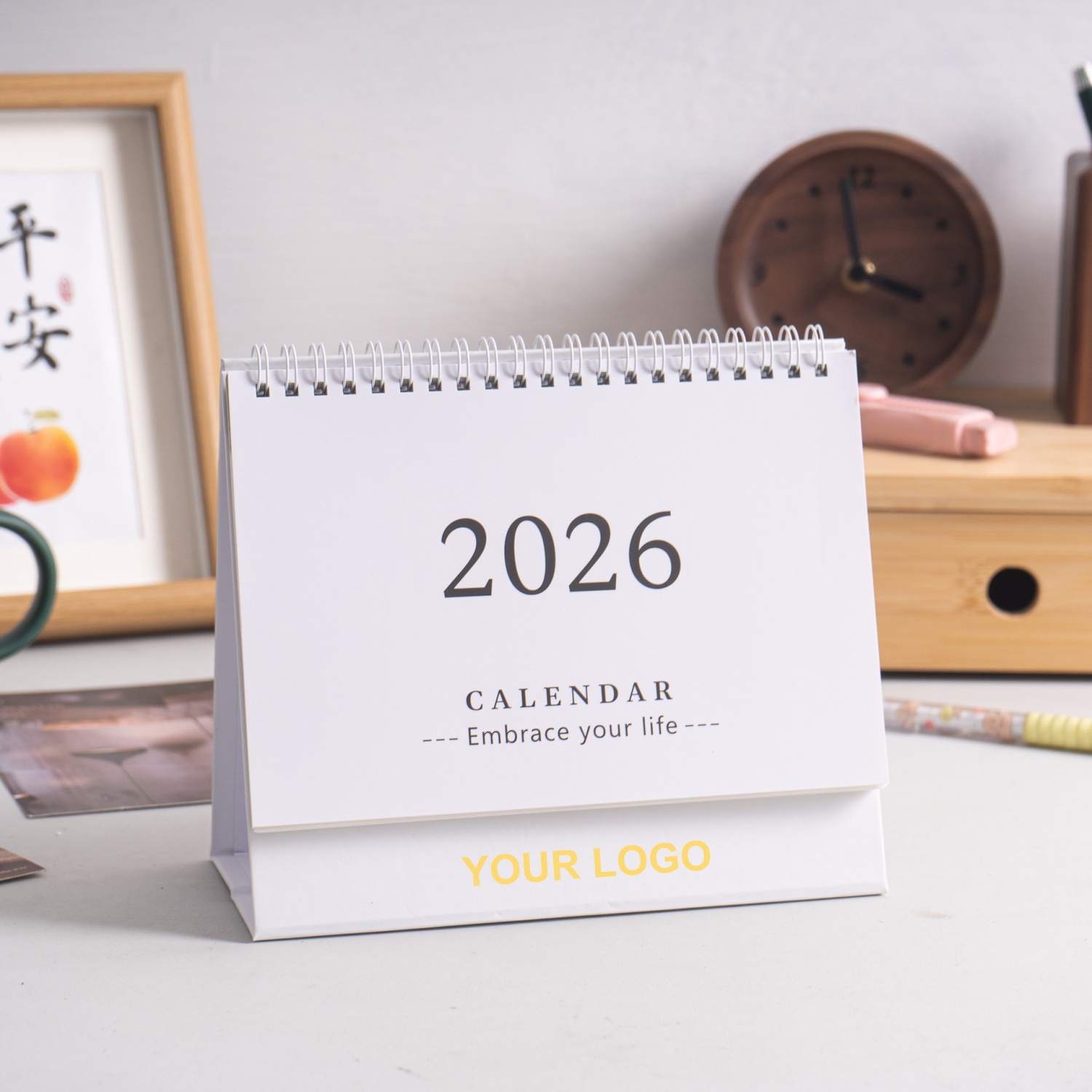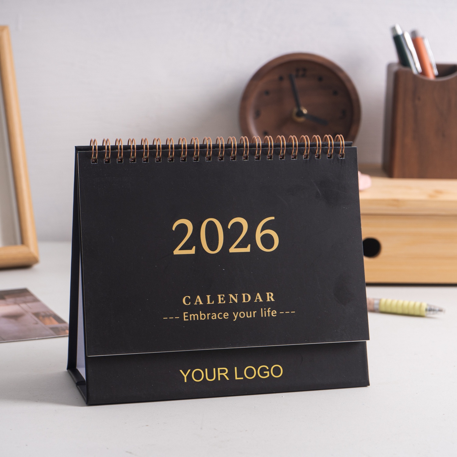 Advertise your brand right at their desk! Keep track of the date.Start planning for next year with this 2026 desk calendar. Place your logo at the base of the cover.