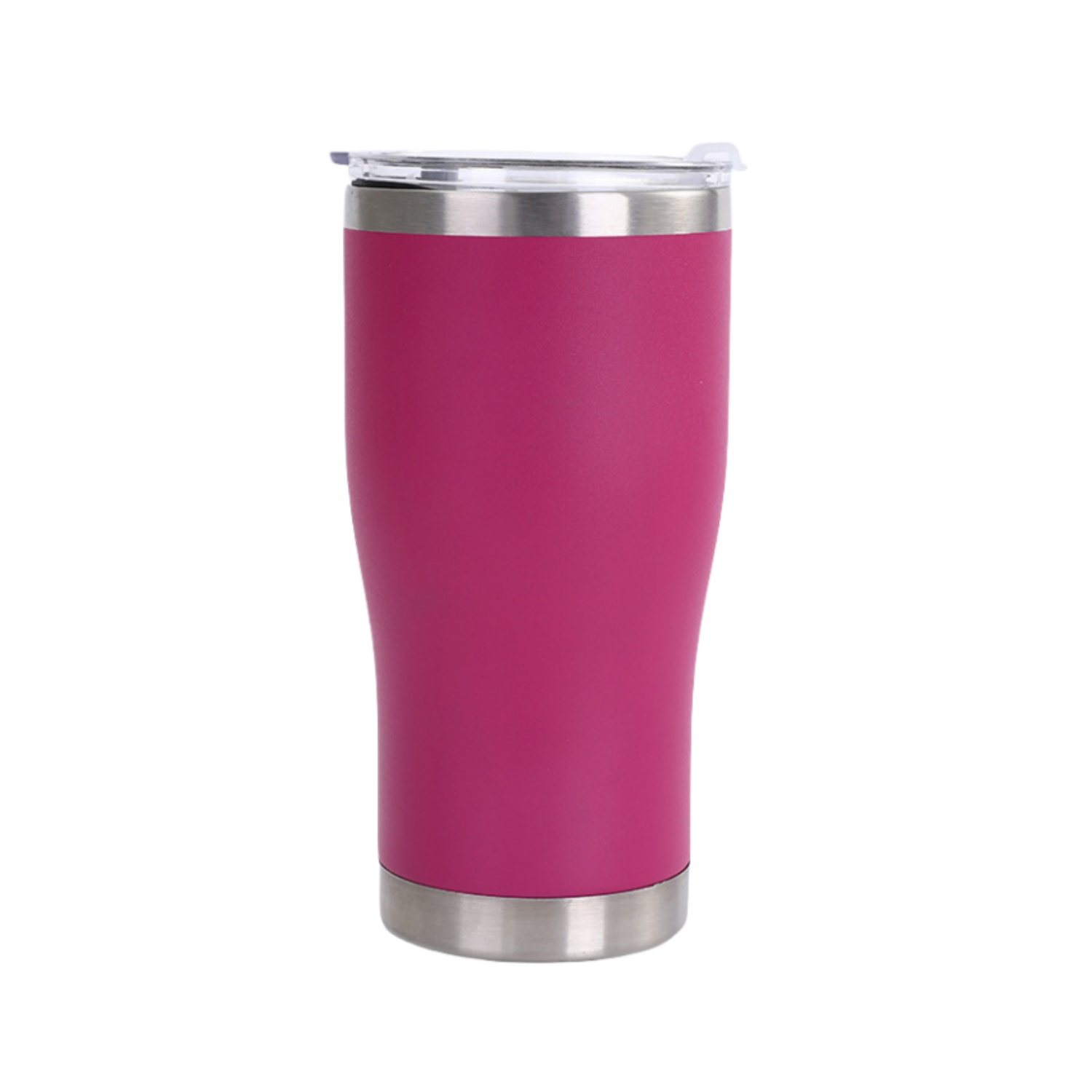 This tumbler is made of Stainless Steel, double Wall Vacuum Insulated, and keep your coffee hot, or your cocktail and water ice cold, whichever you prefer. It fits in most car cup holders with its curved base.