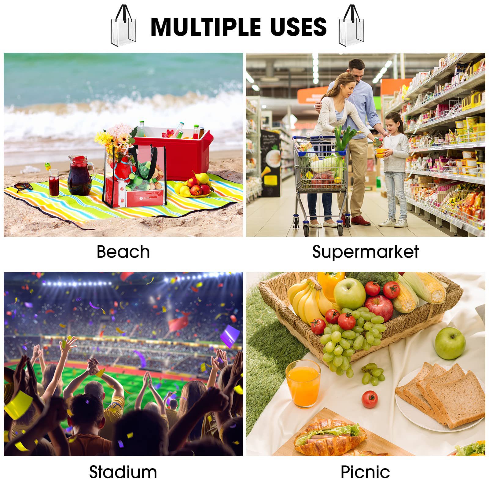 This clear tote bag, crafted for both style and practicality, keeps your essentials visible and easily accessible.Ideal for stadiums, concerts, travel, or daily outings, it complies with security regulations while offering versatile use.