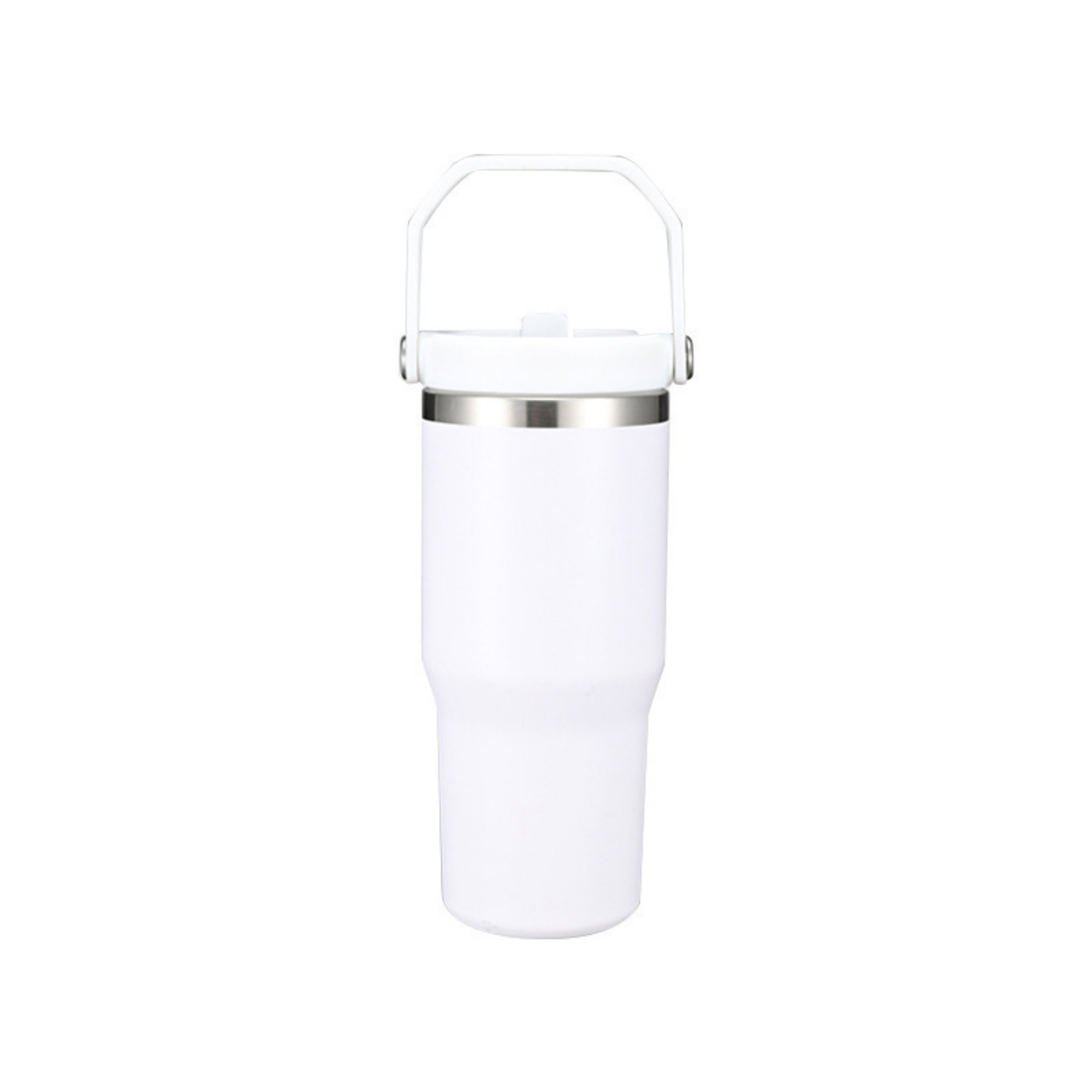 This tumbler is made of Dual walled Stainless Steel construction. The lid has a built in straw. It has a large lantern styled handle.