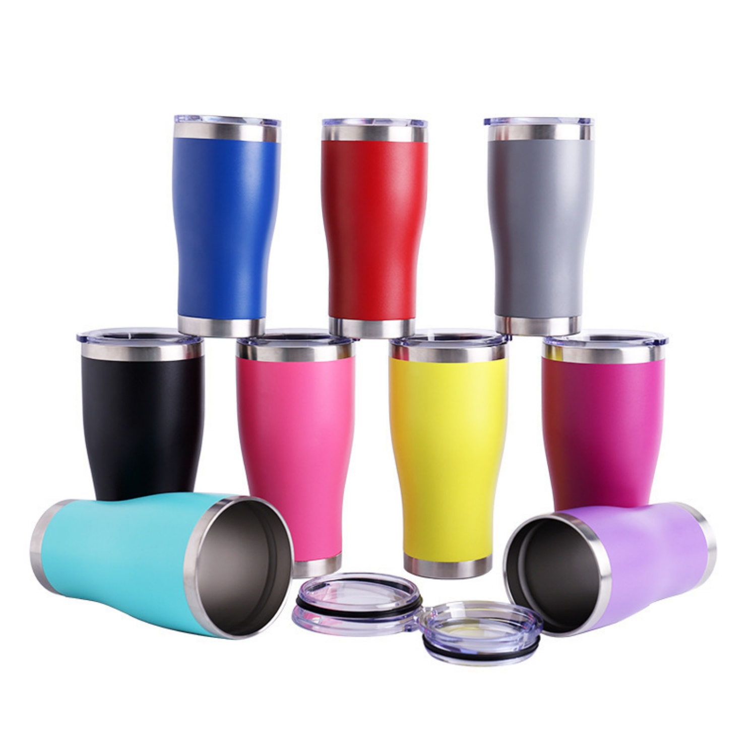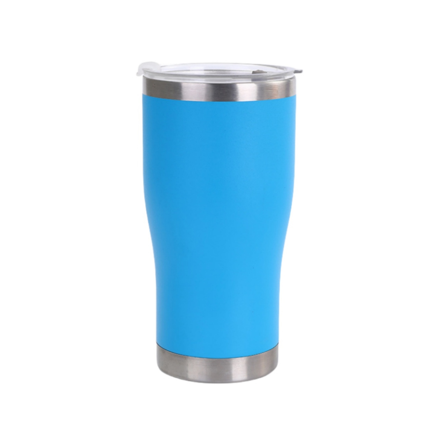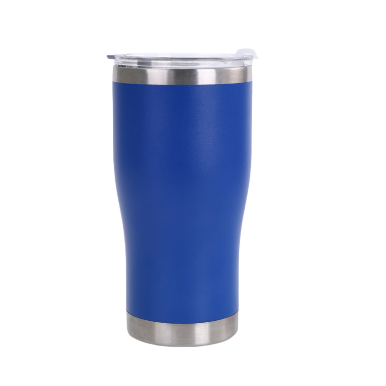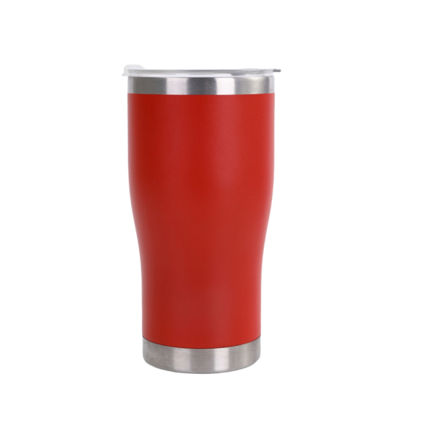 This tumbler is made of Stainless Steel, double Wall Vacuum Insulated, and keep your coffee hot, or your cocktail and water ice cold, whichever you prefer. It fits in most car cup holders with its curved base.